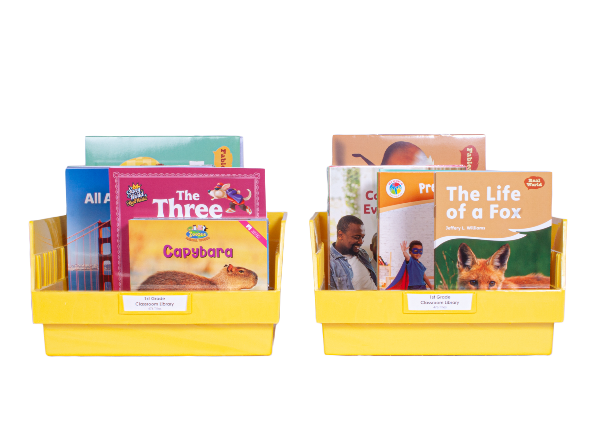 The 1st Grade Classroom Library (6-Packs) includes 6 copies of each of the 510 English titles in our catalog at a first grade reading level. Total Books in Set: 3,060 (510 Titles x 6 Copies Each). Grade Level 1–2. Reading Level D–K.