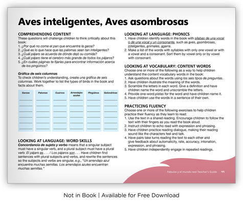 Fábulas y el Mundo Real is a series of authentic Spanish fables and informational texts that have been adapted from English. The series includes 30 intriguing fables, paired with 90 informational texts. Each unique fable is paired with three related, corresponding informational texts, which draw upon the fables' nonfiction elements. Vibrant artwork in the fables helps bilingual, dual language, and Spanish teachers educate students on important lessons and morals, and engaging visual support and great nonfiction text features in the informational texts help to improve critical Spanish literacy skills. The series includes 120 leveled readers in total, 10 of which are available as big books.