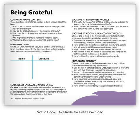 This book explores different ways to show gratitude to important people in students' lives, such as friends, family, and teachers.