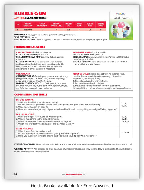 A young girl gets caught in a sticky mess after blowing a large bubble gum bubble. This is a fun and low-leveled book about being cautious with gum.