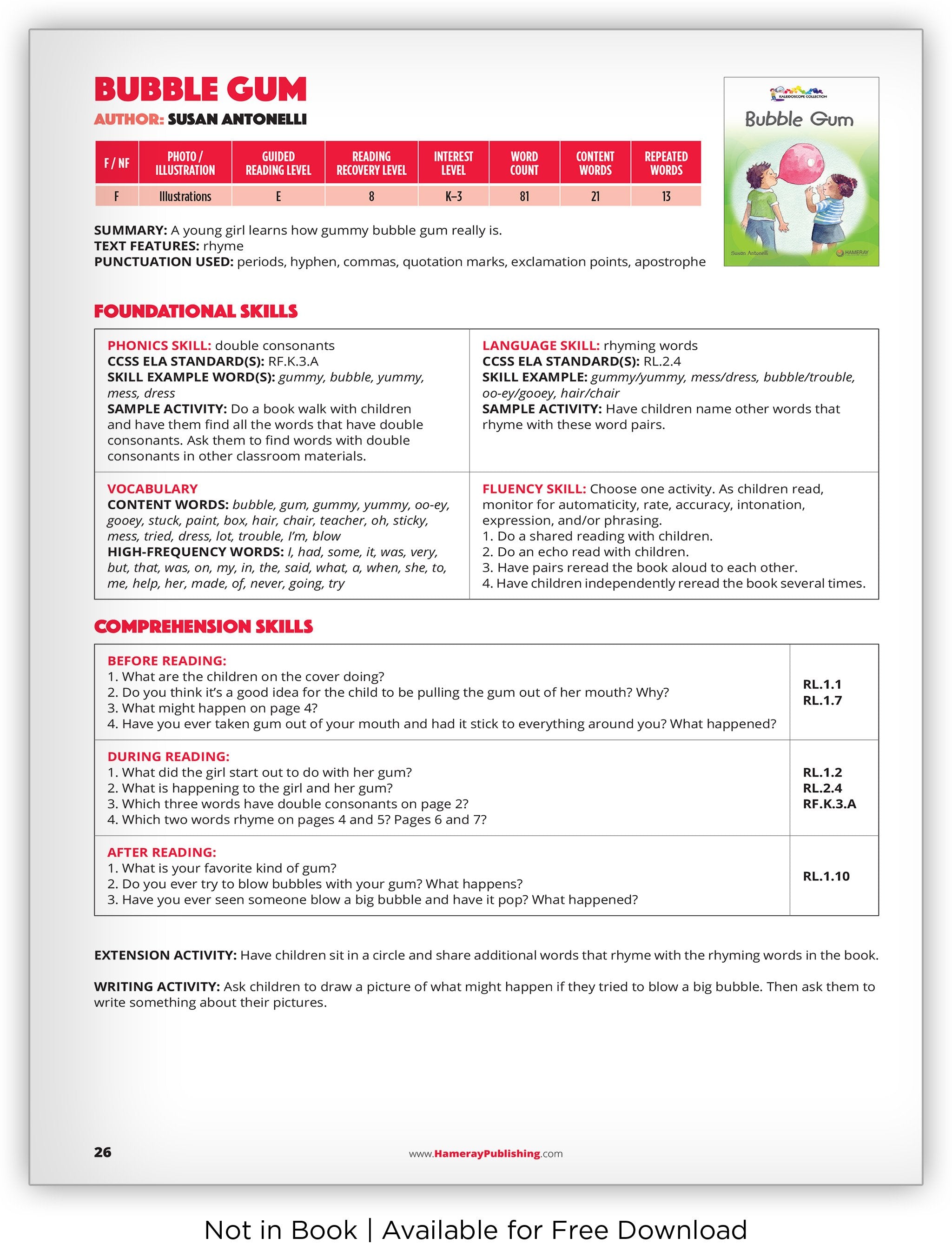 A young girl gets caught in a sticky mess after blowing a large bubble gum bubble. This is a fun and low-leveled book about being cautious with gum.