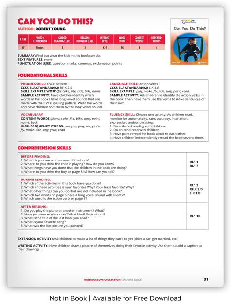 Kaleidoscope Collection is a series of informational and narrative texts written by experienced literacy instructors. Diversity and exploring social themes are two significant features embedded in many of these titles with the help of bold photographs, vibrant illustrations, and a range of text complexity. The series features 180 leveled readers, 70 of which are available as big books.