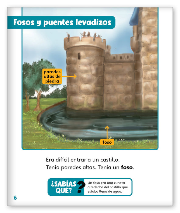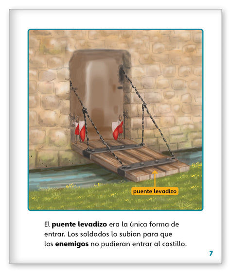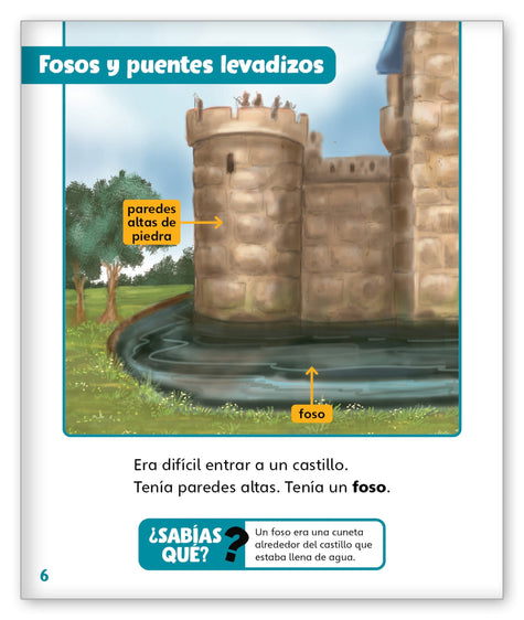 Build a bridge from the story world to the real world with rich informational text features and facts in Spanish about life inside and around castles.