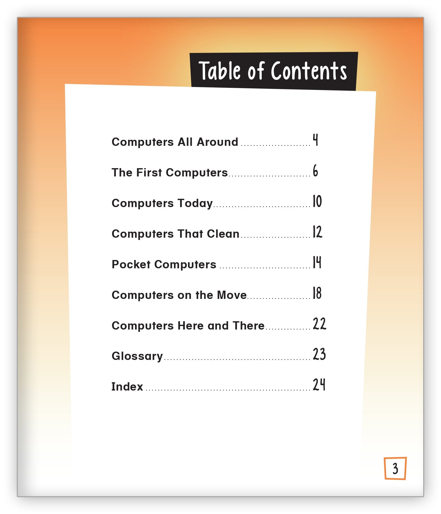 Computers are used in more places than just at the desk or on your lap. Many machines contain computers, and they are used for many different purposes. This book explores the many places that computers can be found.