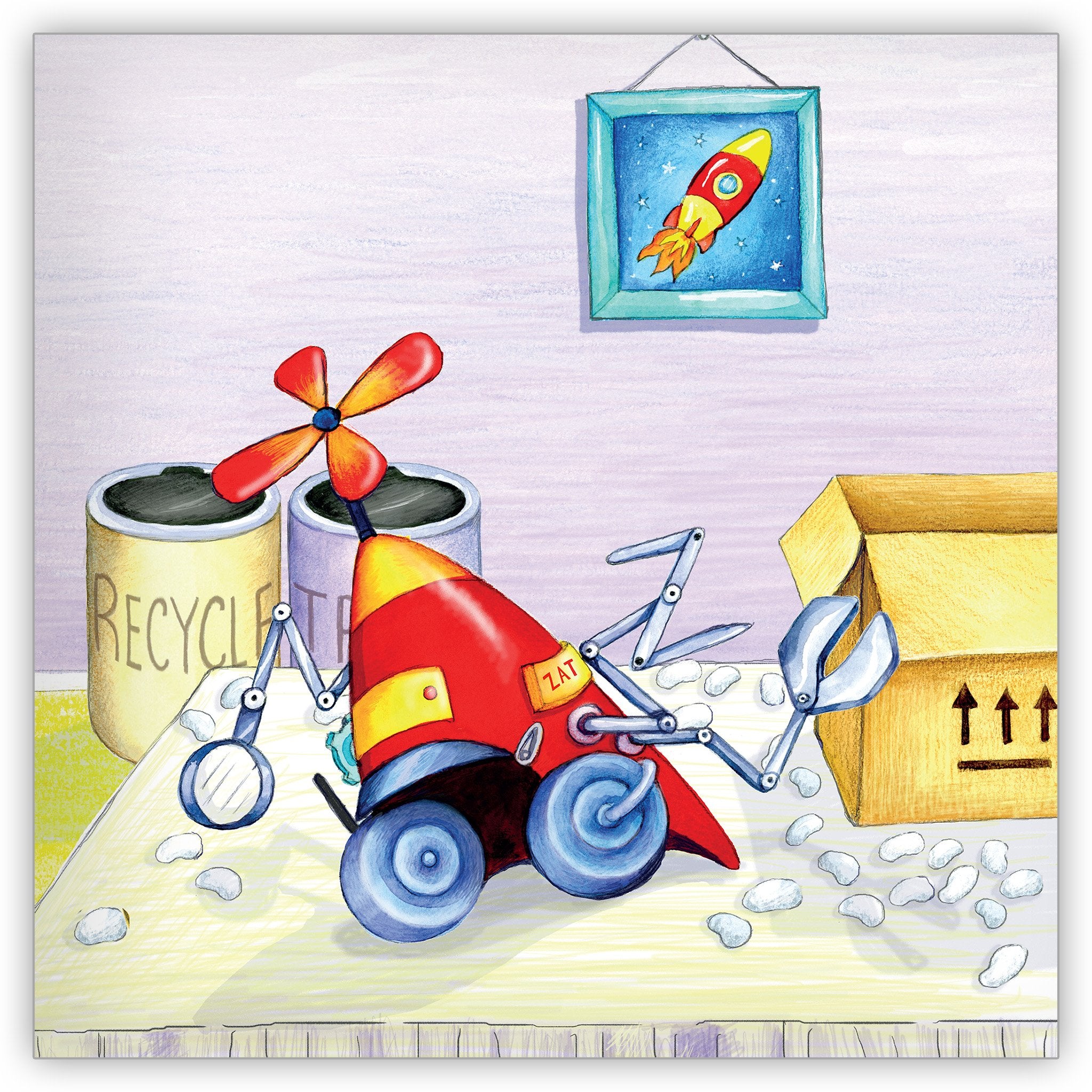 Dan is a flying man who loves his special hat until he sees a new one with a fancy Zippy Zappy ZAT! What follows is a wild journey up and down and across the skies as Dan learns that new isn't necessarily always better...