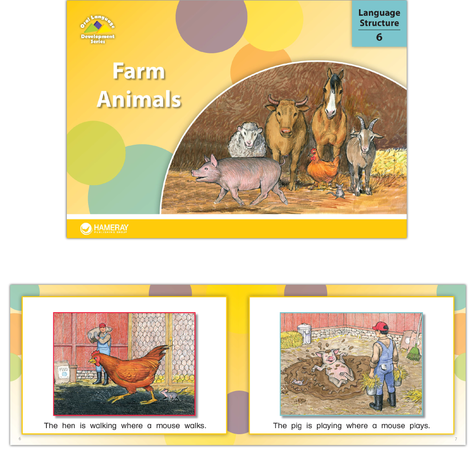The Farm Animals Set contains a copy of each of the 16 books in the Farm Animals theme of the Oral Language Development Series. The set contains books at the following language structure levels: Entry (wordless), LS1, LS2, LS3, LS4, LS5, LS6, and LS7.