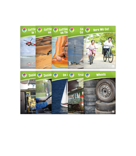 The Going Places Theme Set contains a copy of each of the 10 informational texts in the Going Places theme of the My World series. Topics include trains, water vehicles, and more! Reading level range: wordless and A–F.