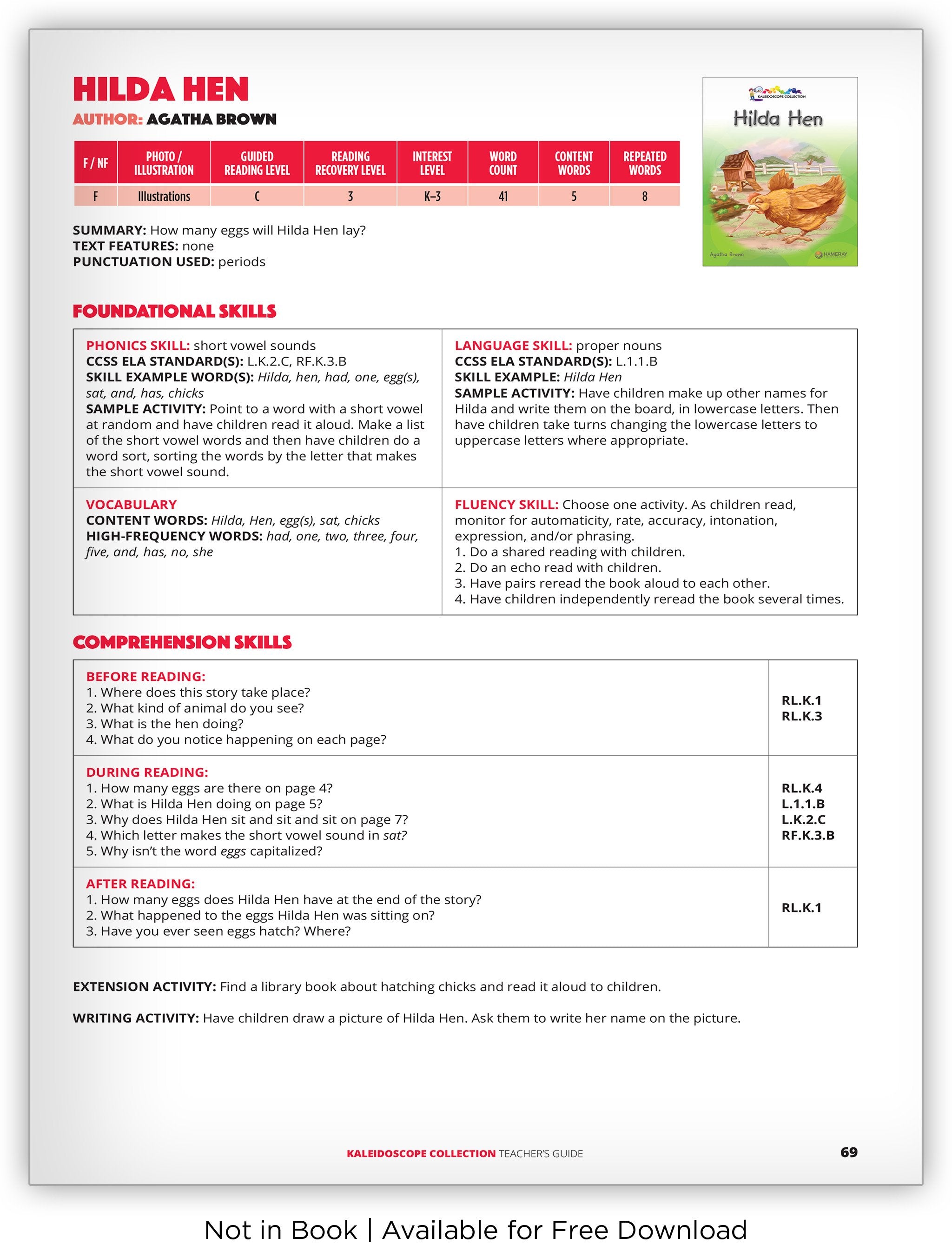 Stimulate the love of reading by following Hilda Hen and her eggs as they hatch in this Kaleidoscope Collection narrative text.
