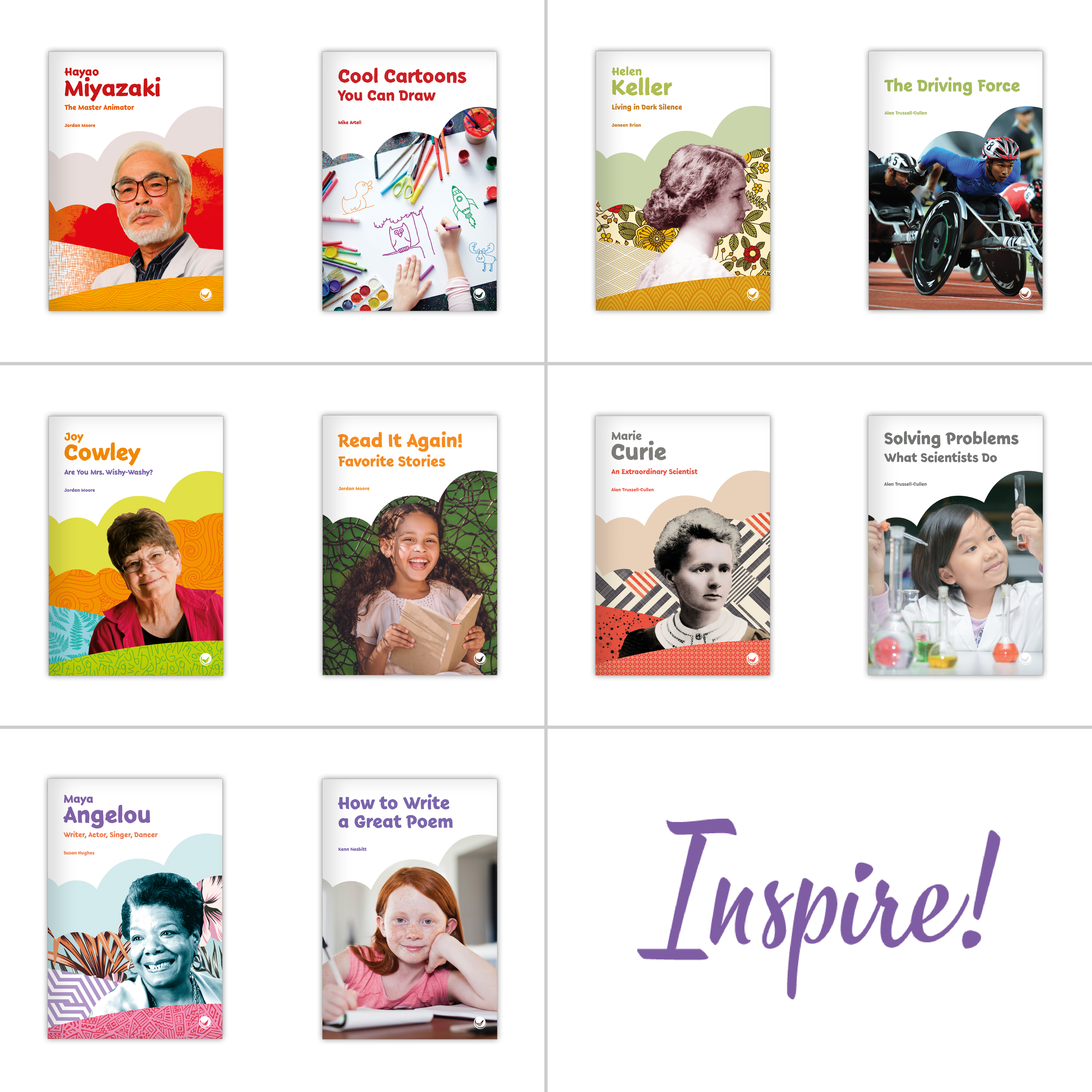 Inspire! is an intriguing and engaging series of 38 informational text chapter books for grades 2-3. The series features biographies of nineteen extraordinary trailblazers, each paired with a unique nonfiction chapter book that explores a key theme related to the individual's life.