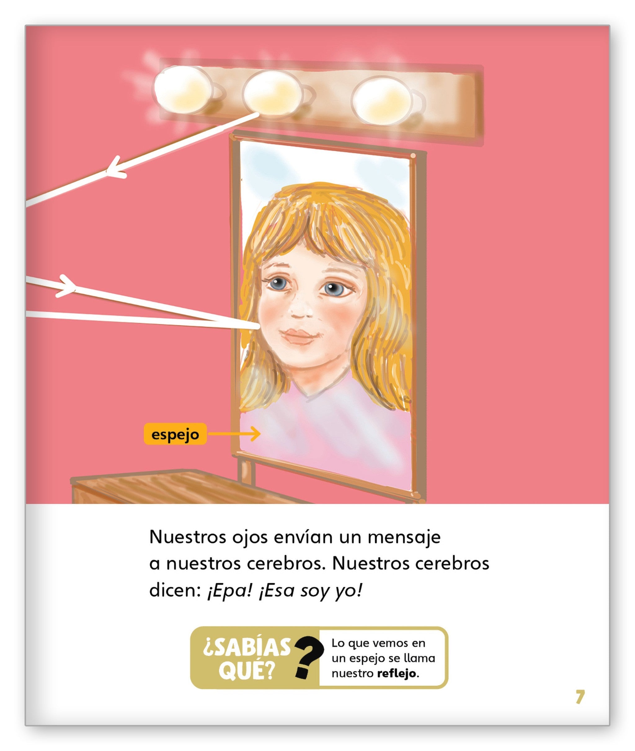 Pair this intriguing Spanish informational text about how mirrors work and where they are used with the Spanish version of The Greedy Dog and the Very Big Bone.