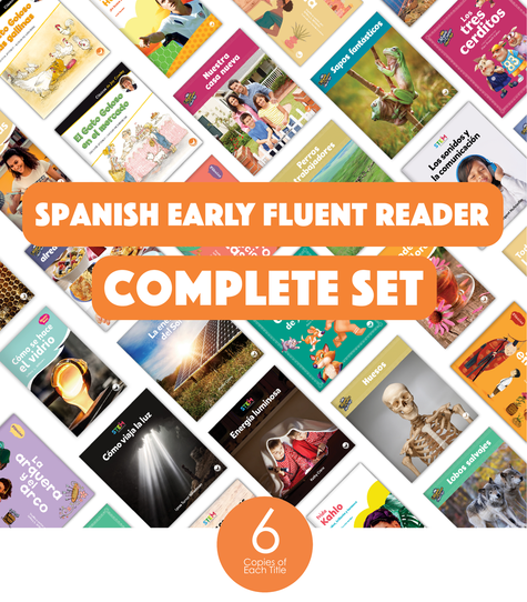 The Spanish Early Fluent Reader Complete Set (6-Packs) includes 6 copies of each of the 84 Spanish titles in our catalog at an early fluent reading level. Total Books in Set: 504 (84 Titles x 6 Copies Each). Grade Level 2. Reading Level J–M.