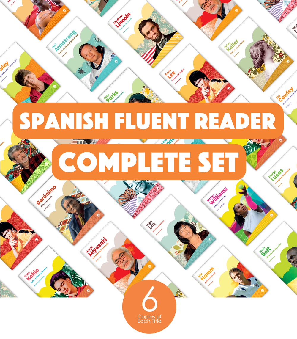 The Spanish Fluent Reader Complete Set (6-Packs) includes 6 copies of each of the 17 Spanish titles in our catalog at a fluent reading level. Total Books in Set: 102 (17 Titles x 6 Copies Each). Grade Level 3. Reading Level N–P.