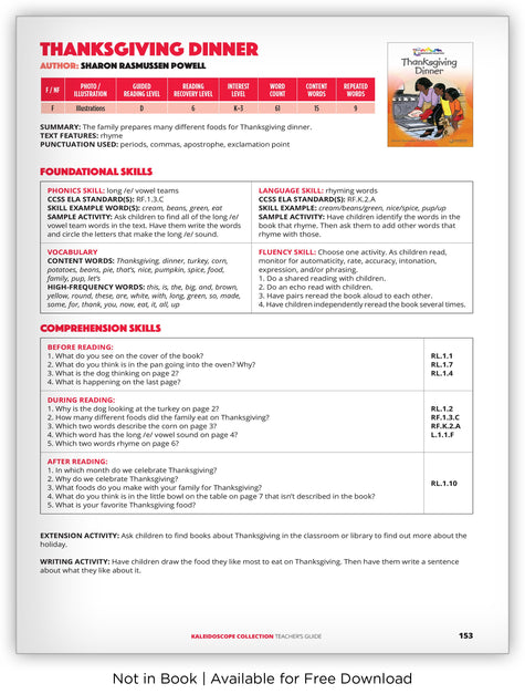 Stimulate the love of reading with this narrative text about the colorful foods made to eat at a Thanksgiving dinner.