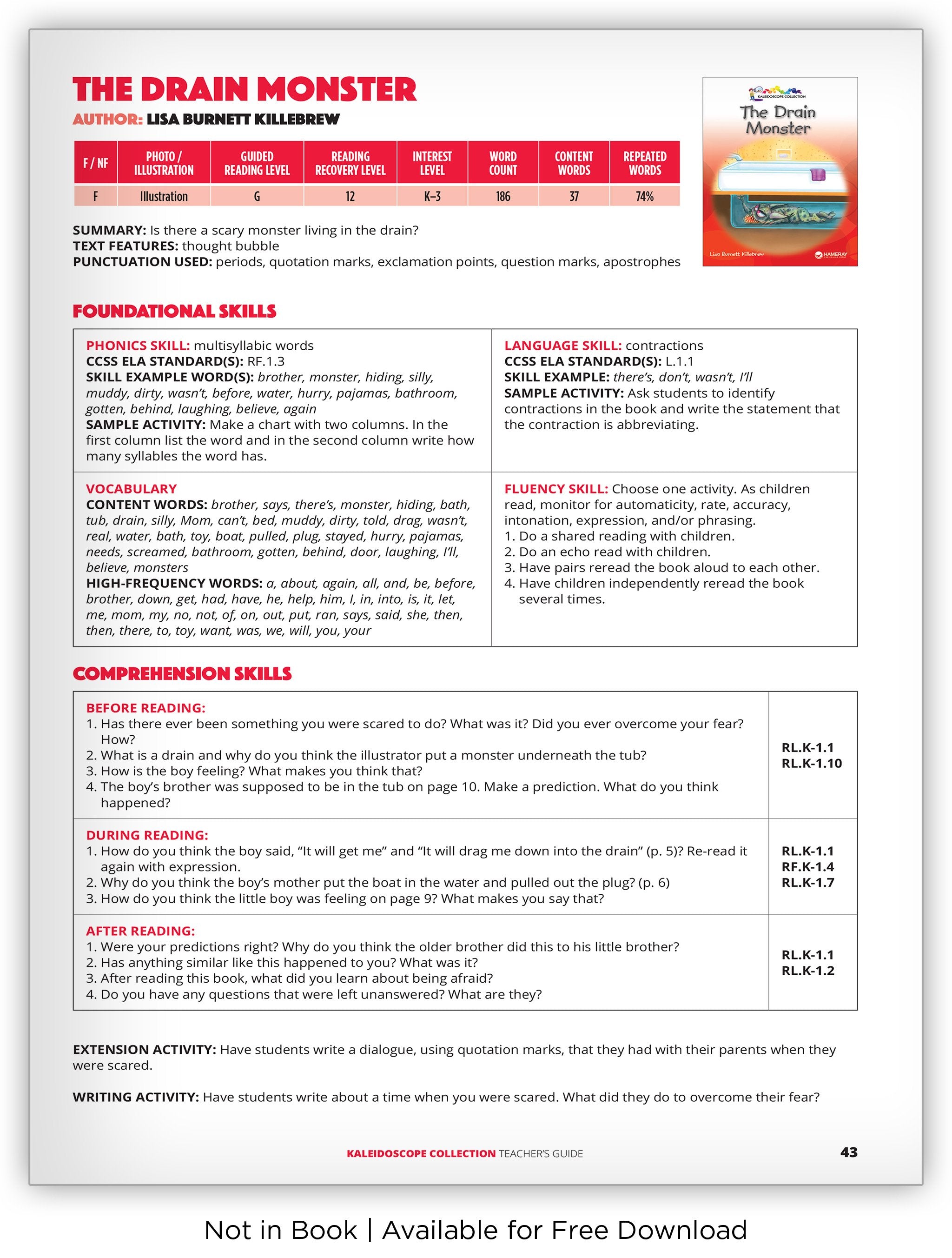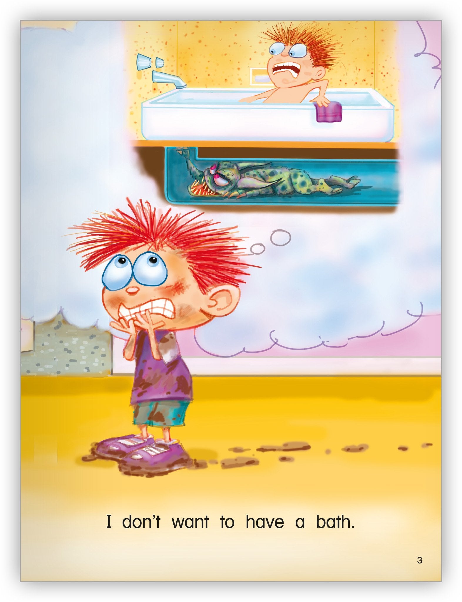 A big brother tells his little brother there is a drain monster in the tub. Luckily, when it is time for a bath, the little brother learns the truth about the drain monster in this amusing narrative text.