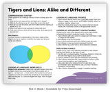 This informational text is an excellent resource to heighten students' ability to compare and contrast tigers and lions while engaging with practical nonfiction text features.