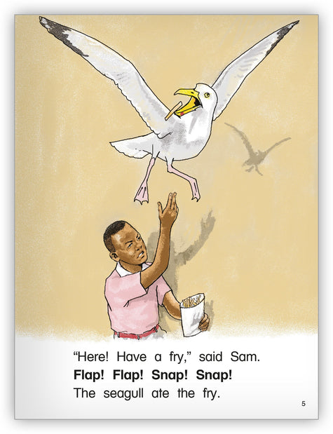 Sam and his dad go to the beach and quickly learn what happens when too many seagulls get a taste of their snack in this amusing narrative text.
