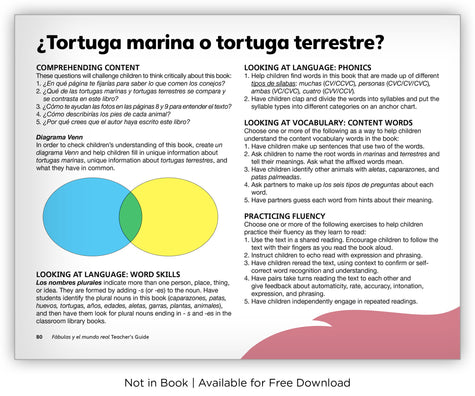 This informational text is a practical authentic Spanish tool to help readers compare and contrast turtles and tortoises, which look similar but have very different lifestyles.