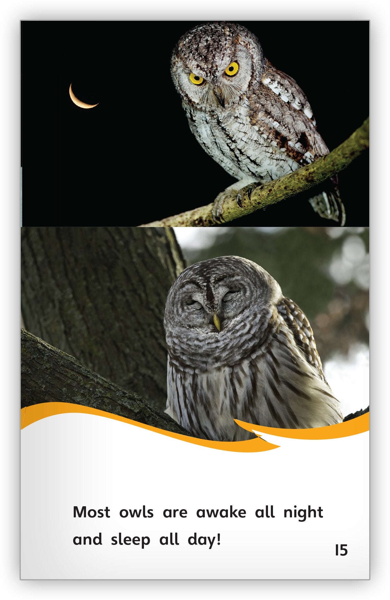 Did you know owls have special feathers to help them fly silently? This nonfiction text offers labeled photographs and a bulleted list of owl facts to help reinforce this engaging book's content.