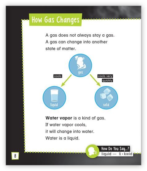 Part of the states-of-matter portion of this series, this book explains what gas is and how it functions. Students will learn how they can observe gas even though it is invisible, and why gas is important.