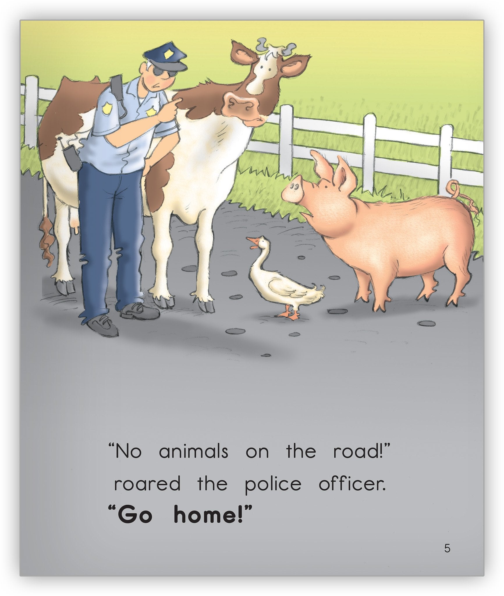 From the creator of Mrs. Wishy-Washy comes the story of animals who are told by a police officer to get off the road to stay safe.