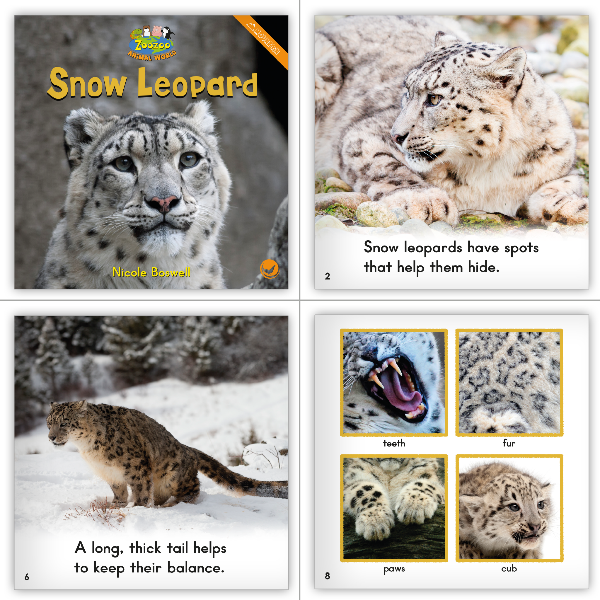 Zoozoo Animal World is a series of appealing informational texts that uncover details about animals in several different habitats, such as the Arctic, desert, farm, forest, and more. Sentences in lower-level books are written with repetitive structures with sight words, and higher-level books incorporate pronouns and grammar skills for more advanced students. The series features 110 leveled readers, 20 of which are available as big books.