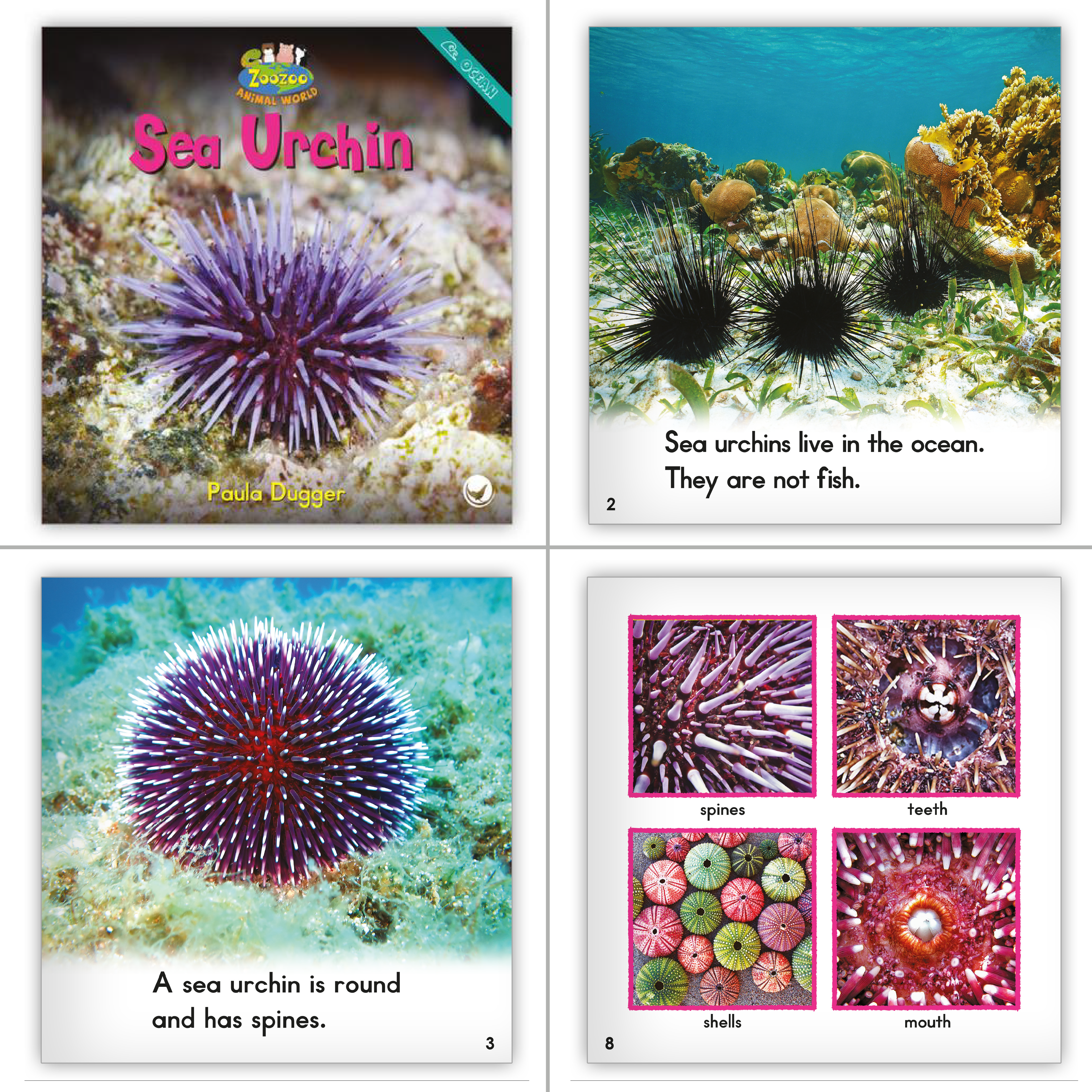 Zoozoo Animal World is a series of appealing informational texts that uncover details about animals in several different habitats, such as the Arctic, desert, farm, forest, and more. Sentences in lower-level books are written with repetitive structures with sight words, and higher-level books incorporate pronouns and grammar skills for more advanced students. The series features 110 leveled readers, 20 of which are available as big books.
