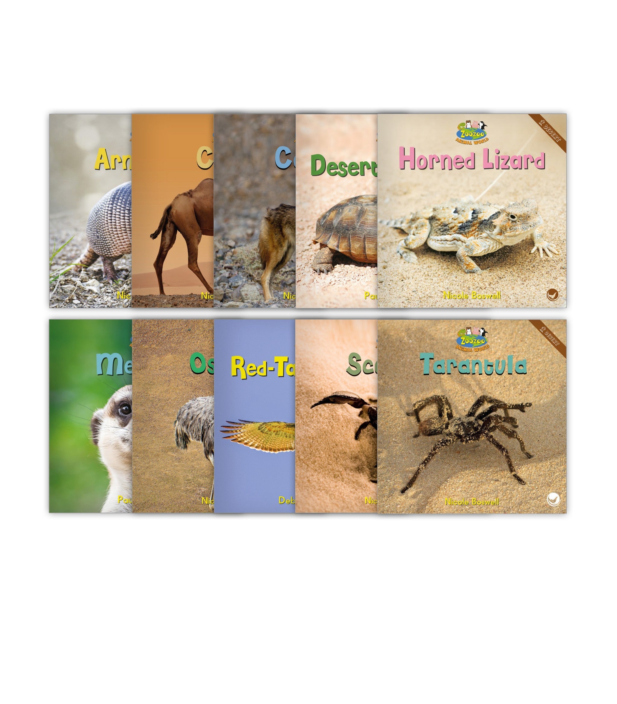 The Zoozoo Animal World Desert Sampler Set contains a copy of each of the 10 leveled readers in the desert habitat theme of the Zoozoo Animal World series. All titles are nonfiction and have teacher talking points in the back. Reading level range: D–H.